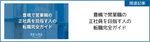 豊橋の営業職を目指す方に向け、情報をまとめた記事も下記からぜひご覧ください!